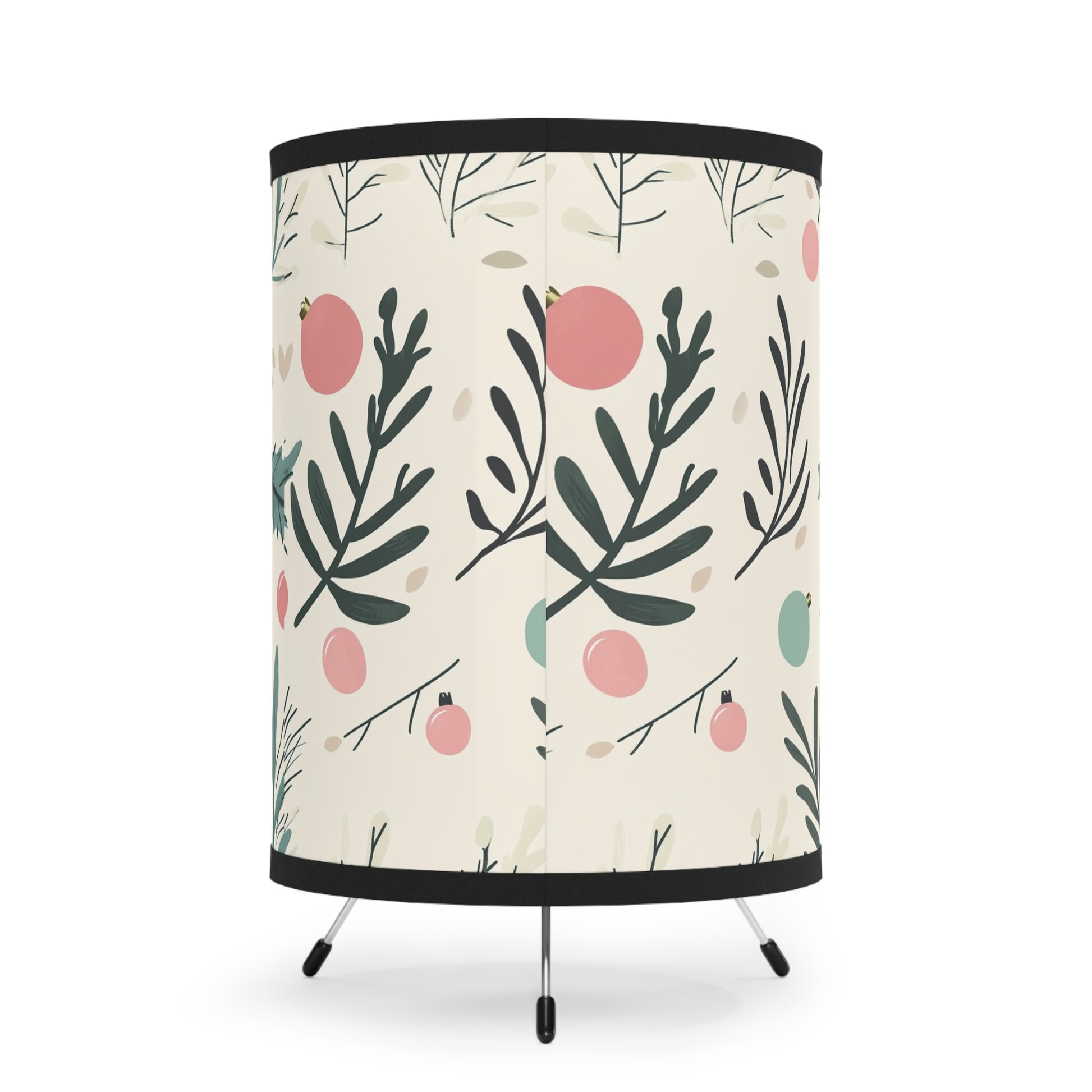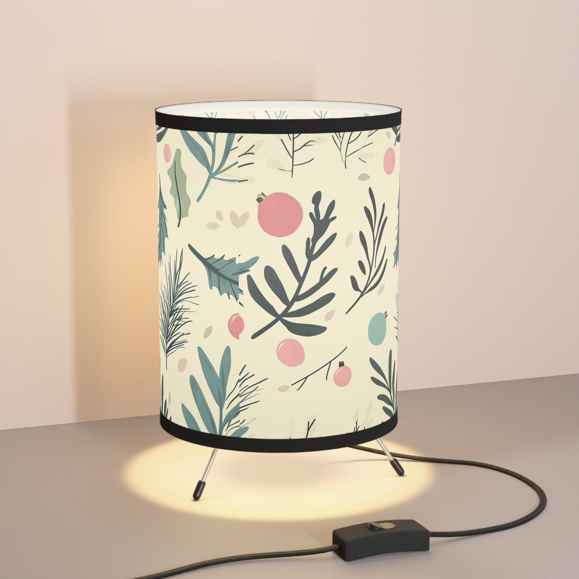 Botanical Holiday Tripod Lamp — Printed Leaf & Ornament Drum Shade