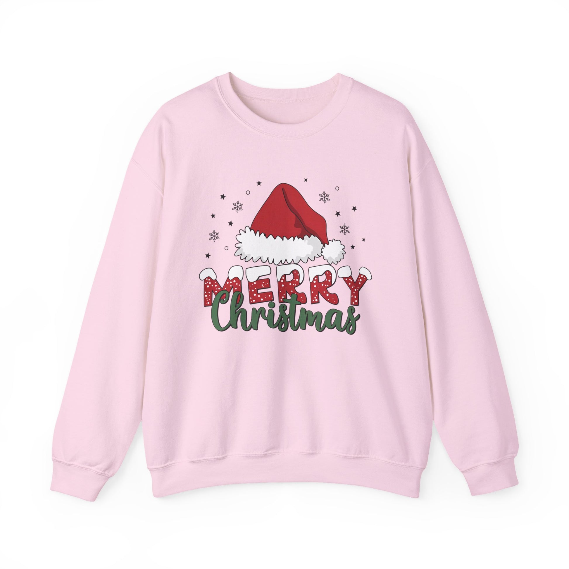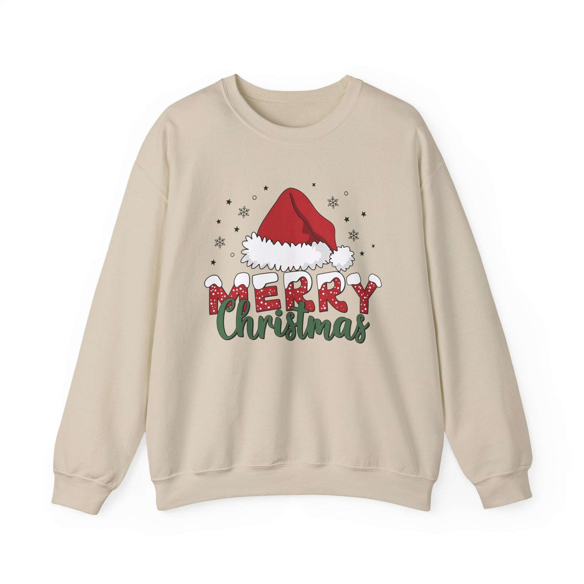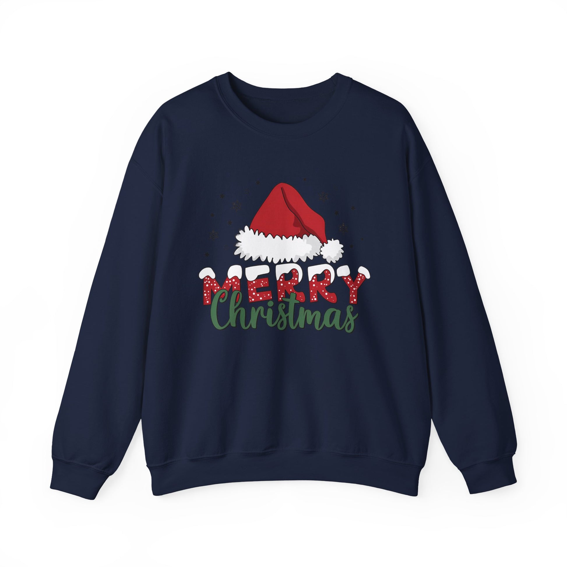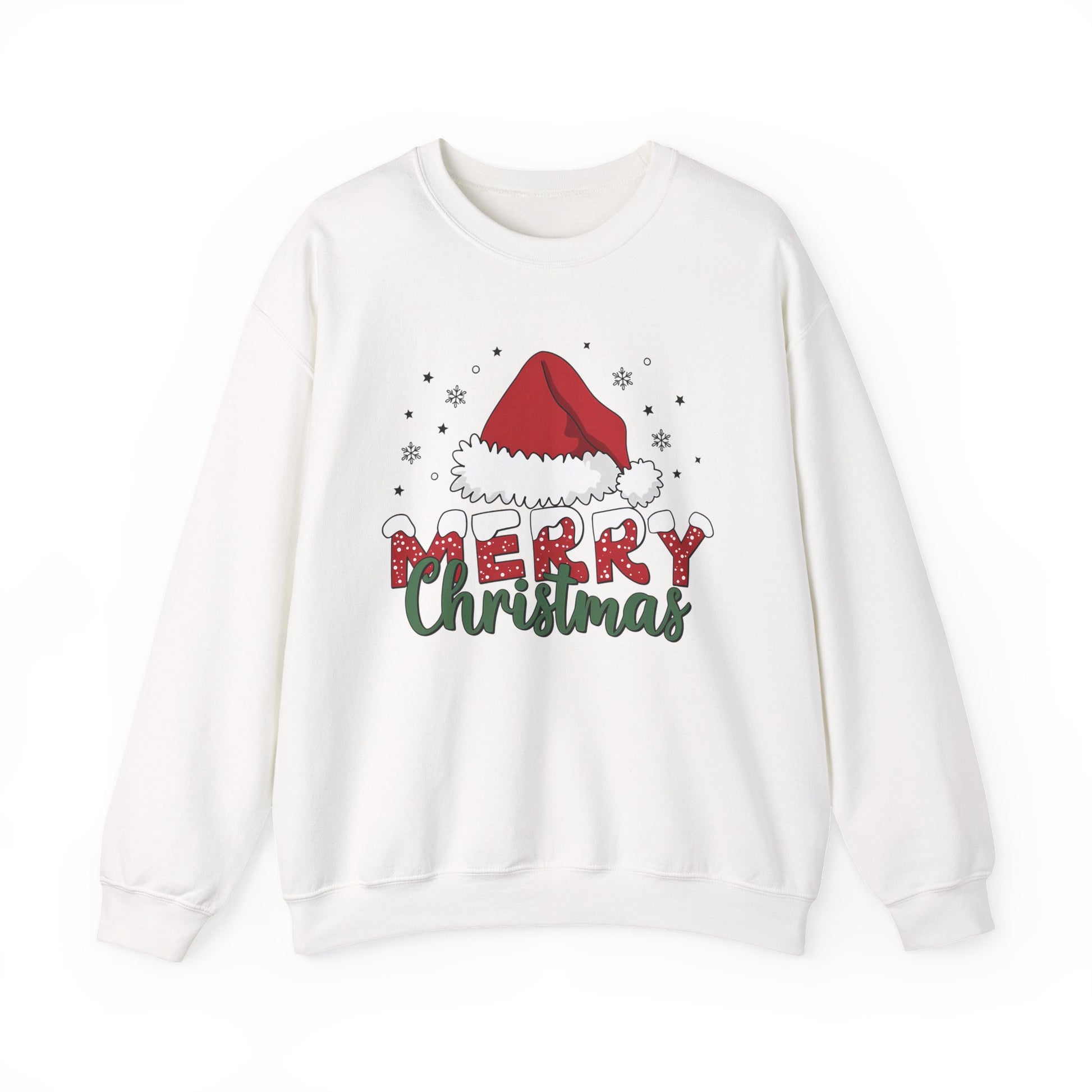 Stay cozy and festive with this Merry Christmas Sweatshirt featuring a Santa Hat design. Perfect for adults looking to add a touch of holiday cheer to their wardrobe. Ideal for Christmas celebrations and gatherings.